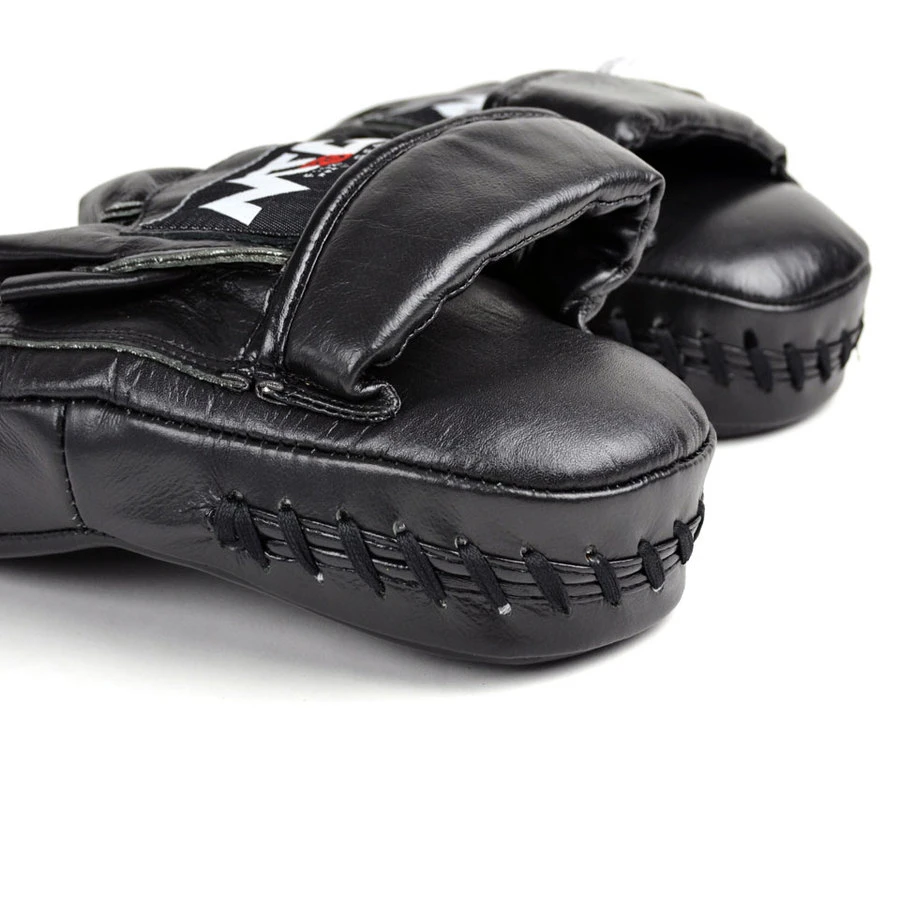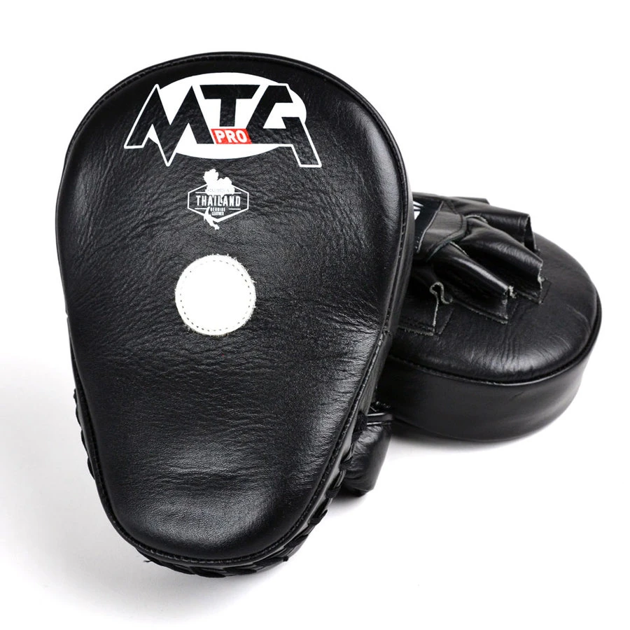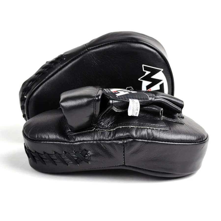 High quality curved focus mitts from MTG Pro designed for a trainer to catch punches easily.