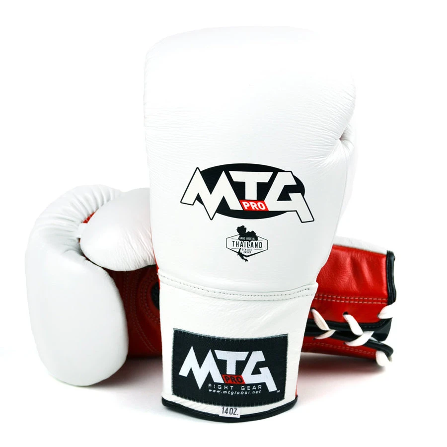 High quality lace up boxing gloves from MTG Pro with an attached thumb for safety and optimised for sparring and training.