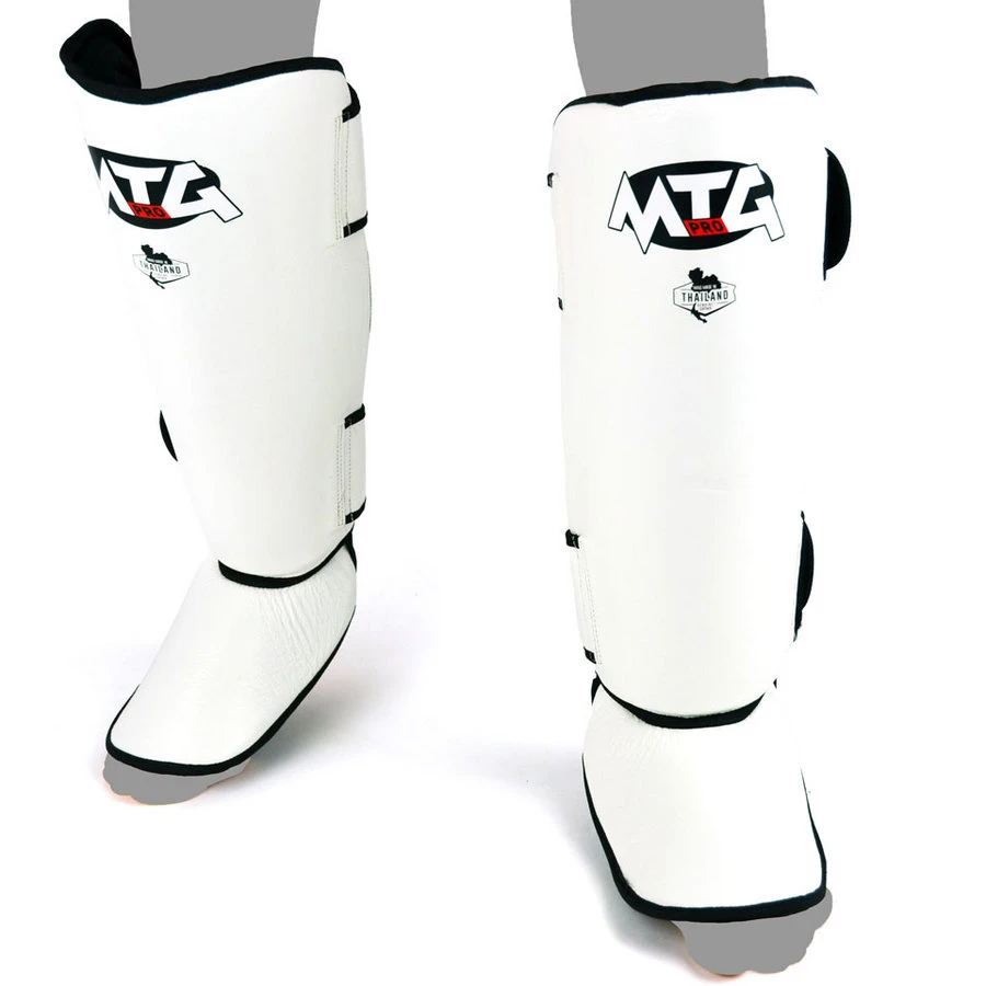- Thick padded Muay Thai style shin pads from MTG Pro with good foot coverage for maximum protection when sparring.