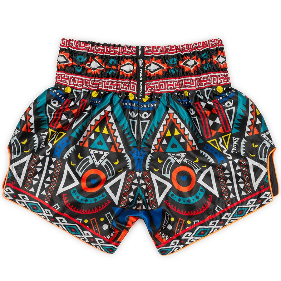 High quality satin Muay Thai shorts from Twins Special finished with a very high standard of embroidery and craftsmanship. Sublimated printing technique on the sides that wont fade with repeated washes. Featuring an 8-strip elastic waistband for maximum comfort and a snug fit without restricting movement. Has an inner drawstring for an extra secure fit.